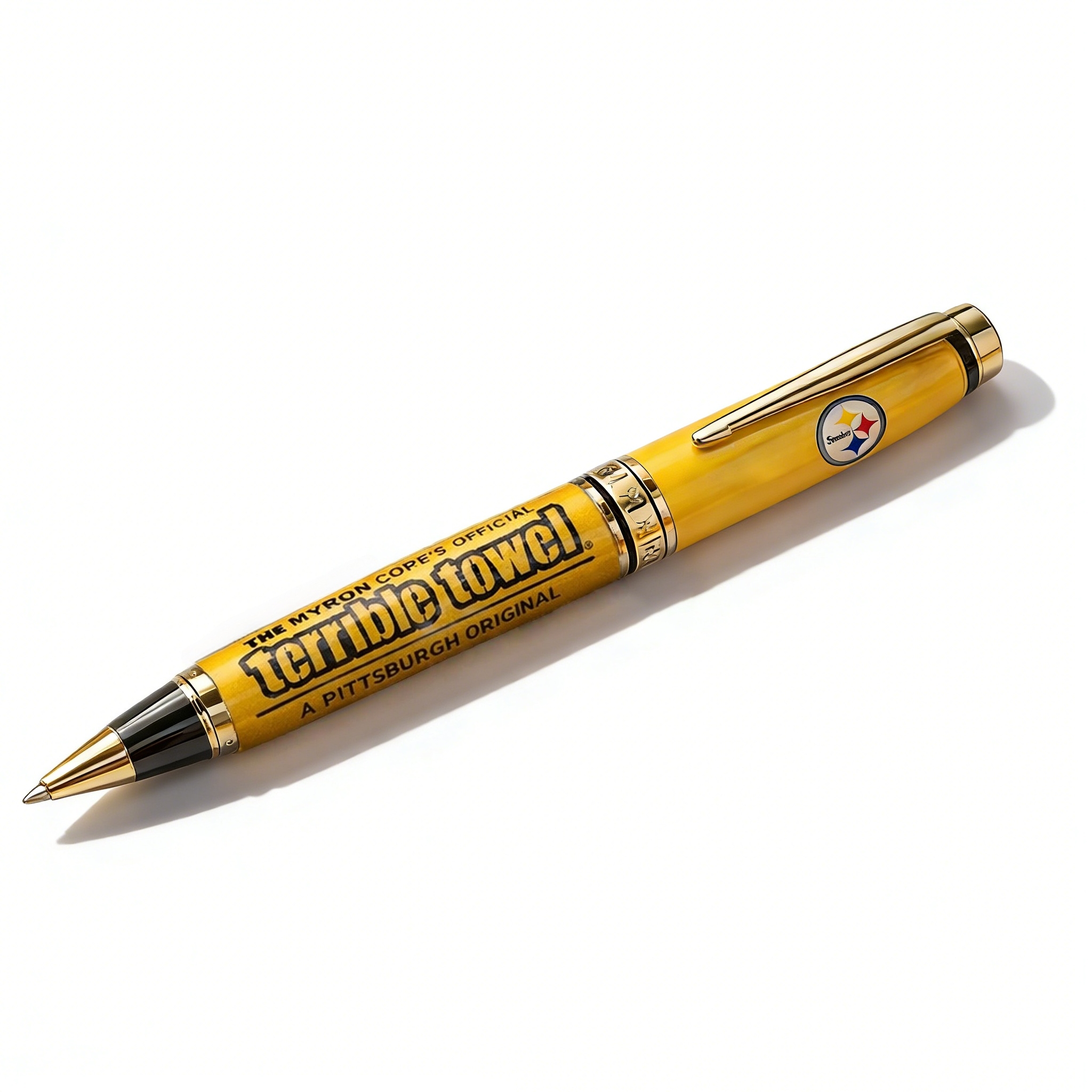 ✨ Crafted in unmistakable Terrible Towel gold, this premium pen features commemorative “1975–2025” engraving, official Terrible Towel branding, and refined metallic accents that echo the toughness and excellence of Pittsburgh football. The balanced, weighted feel delivers a smooth, confident writing experience—just like the Steeler teams that defined generations with discipline, defense, and heart.